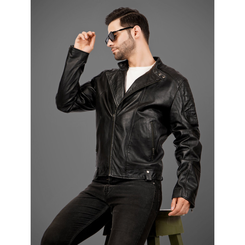 Crafted from 100% genuine lamb leather, The Maverick embodies effortless cool with its sleek biker-inspired silhouette. The supple lambskin offers unmatched softness, while the tailored fit enhances your natural shape for a refined yet rugged look. Featuring a stand collar with snap closure, clean front zipper, and subtle shoulder detailing, this jacket balances luxury and attitude perfectly — ideal for city nights, road trips, or casual weekends.