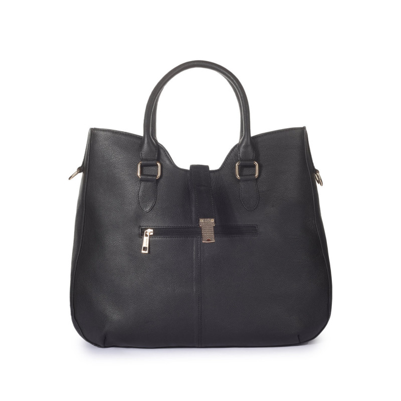 The Milano Leather Tote Bag by Bannhuff London is designed for women who value both sophistication and practicality. Crafted from premium textured leather, this elegant black tote offers a structured yet soft silhouette that complements both professional and casual looks.