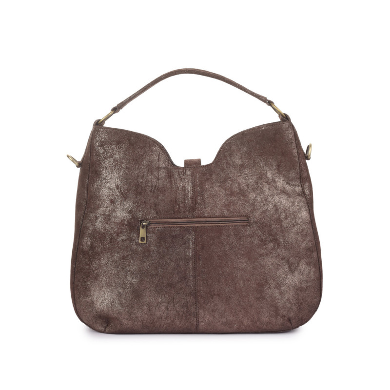 Crafted from smooth premium leather the Siena Ring Hobo Bag by Bannhuff London blends timeless craftsmanship with contemporary style. Crafted in a rich vintage brown textured finish, this bag features a relaxed hobo silhouette that drapes beautifully while offering generous space for daily essentials. The signature double-ring hardware accent at the front adds a sophisticated statement, while the structured handle and detachable shoulder strap provide versatile carrying options. Perfect for workdays, weekends, and travel, this bag delivers understated luxury with practical functionality.