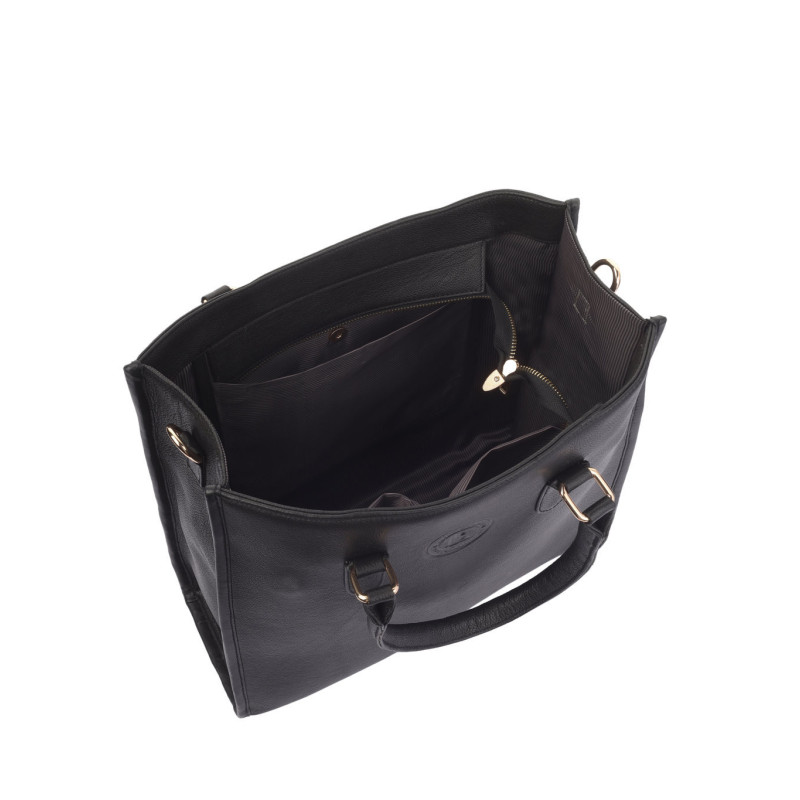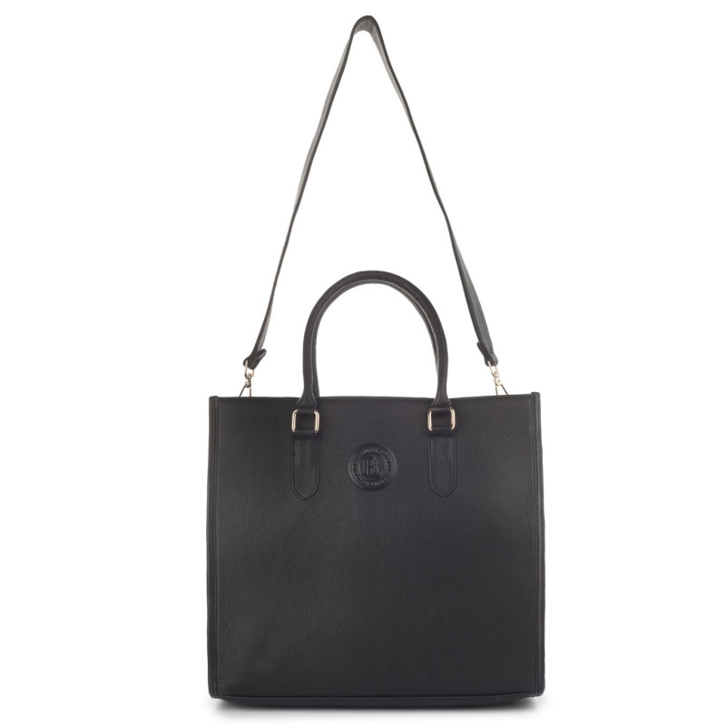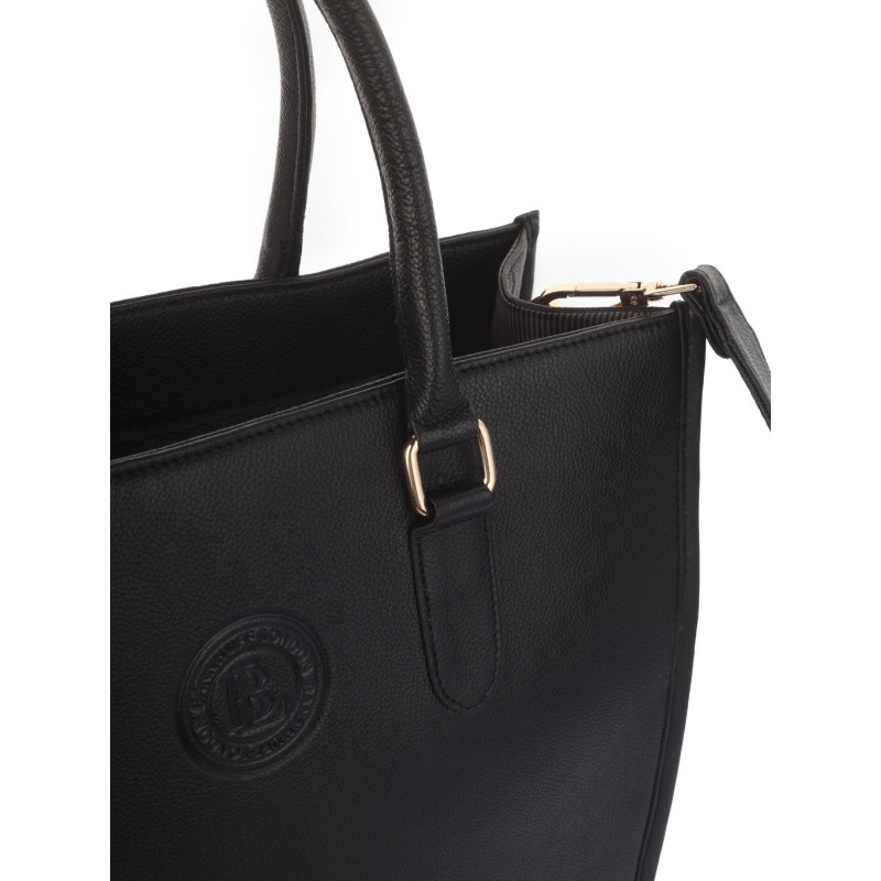 The Bannhuff London Elegant Black Classic Structured Tote is designed for women who value elegance, versatility, and everyday practicality. Crafted with a sleek black textured finish, this tote delivers a timeless silhouette that complements both professional and casual styles. The structured design maintains its polished shape while offering generous space for daily essentials, making it ideal for work, meetings, or city outings. Dual top handles provide comfortable hand carry, while the detachable shoulder strap adds convenient hands-free wear. Finished with subtle branding and refined hardware, this tote embodies understated luxury.