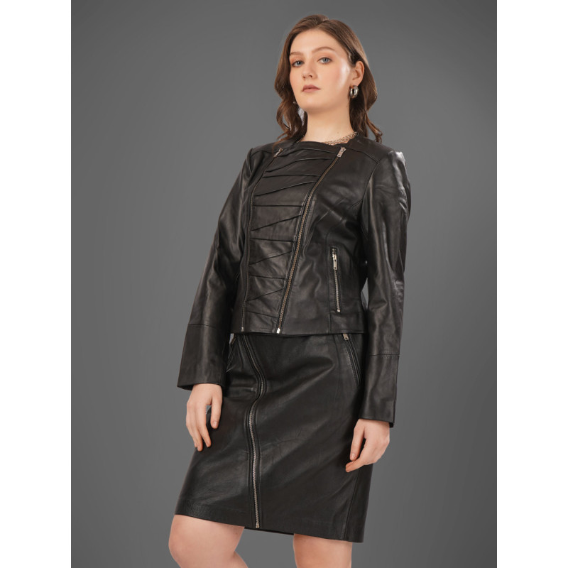Eclipse Women’s Leather Jacket – Black Panel, Timeless Style