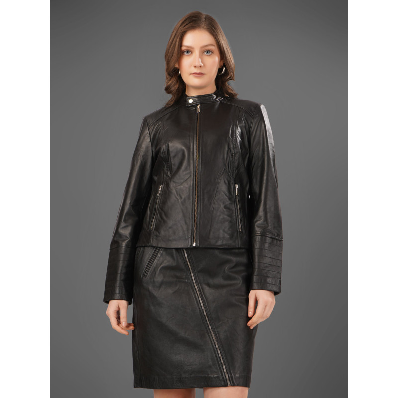 Elevate your wardrobe with this women’s premium black leather jacket, designed for a bold yet sophisticated look.