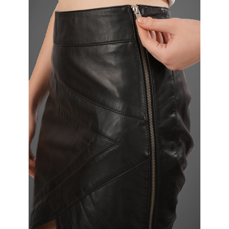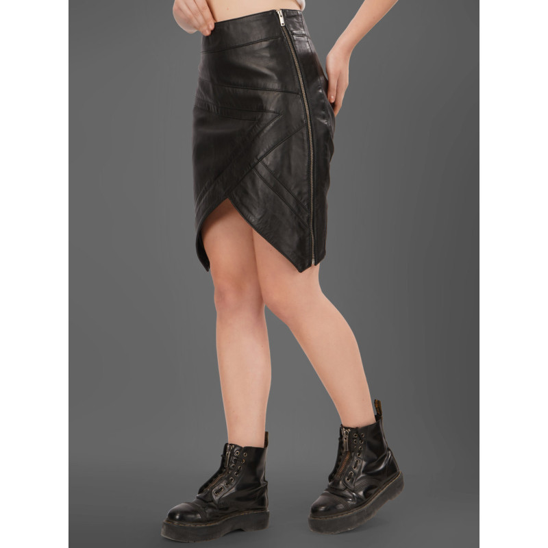 Elevate your style with the Noir Edge Leather Skirt, designed for women who love to make a statement. Crafted from premium lamb leather, this skirt features a figure-flattering silhouette, bold seam detailing, and an edgy side zipper for modern appeal. Its versatile design pairs effortlessly with crop tops, blazers, or oversized knits, making it perfect for both nights out and elevated daywear. With its chic black finish and contemporary cut, this skirt is the ultimate wardrobe power piece.